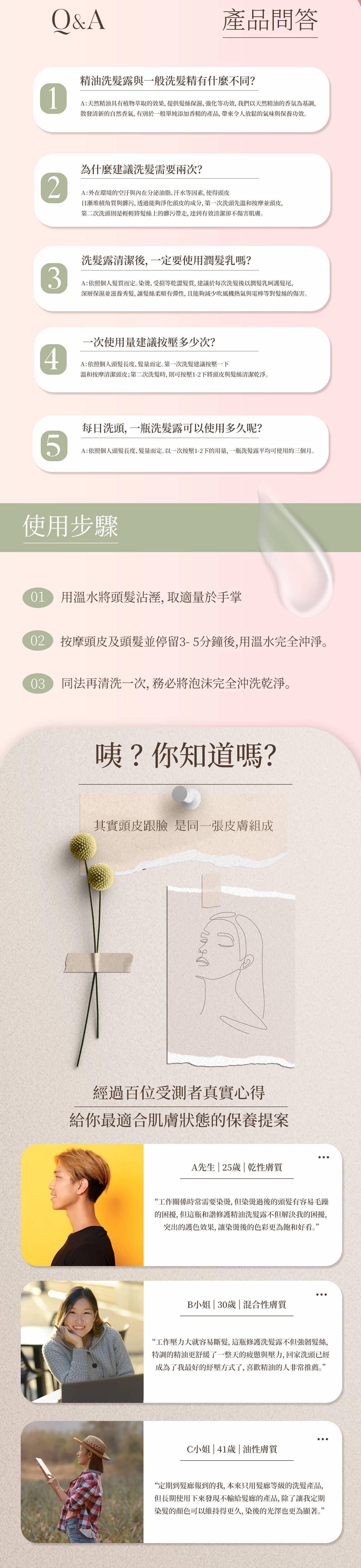 2.以天然精油成分溫和淨化頭皮,滋養髮絲與深層補水